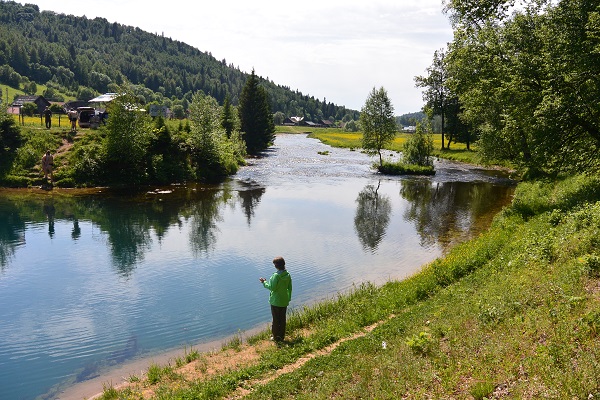 | Это утро было утром отъездов и расставаний. Из квартиры нашей радушной хозяйки в 5 утра вышла девушка Марта, чтобы сесть в машину, найденную на ресурсе Bla-bla-car, и уехать прямо из Самары домой в Польшу. Марта прожила у Ани 9 месяцев, расставаться им было грустно. Следом за польской девушкой юркнули на улицу и мы, надо было пригнать Джебелей со стоянки и тоже отчаливать. Ещё и дочка Анина должна была уехать в этот день к бабушке. А мы в 6.50 уже выехали за пределы Самары, и это было здорово. Наш путь лежал в направлении Голубого озера, где мы рассчитывали наловить рыбы, чтобы вечером её съесть где-нибудь подальше от людских поселений. Повернув на грунтовую дорогу, мы морально приготовились:сейчас будем долго рыскать по местной пыли, бесконечно то взбираясь на холмы, то спускаясь с них, и в дополнение не исключено, что фиг чего найдём. Оказалось нет. К этой достопримечательности ведёт вполне вменяемая дорога, не в болоте и даже не в лесу! Мы подъехали к водоёмчику, где резво плескались караси, а на берегу стояли два стола со скамейками да три яблони, увешанные тряпками. Это, по-видимому, милые русские туристы цепляют на ветки узелки, чтобы что-то там у них в жизни случилось, чего иначе ну вот хоть в лепёшку разбейся - не произойдёт. Саша недоверчиво посмотрел на это карасиное царство и пробормотал, что на фотографиях Озеро выглядело поярче и, чего уж греха таить, поголубее. Однако табличка со словами "Голубое озеро" была непреклонна. Саша ушёл осмотреть окрестности, а я разыскала в вещах маникюрные ножницы и занялась освобождением яблонь от помойки, которую на них устроило стадное быдлище. Что там только не висело: носовые платки, детские носки, бахилы, какие выдают в поликлиниках, бумажные салфетки, бывше-влажные салфетки, полиэтиленовые пакеты, шнурки, куски вафельных полотенец, георгиевские ленточки, даже кусок проволоки какая- то тварь накрутила. На некоторых ветках было видно, как тряпки мешают им расти в ширину и на месте перевязки возникают шрамы, а вокруг - вздутия. Вернулся Саша и возвестил, что Озеро нашлось. Оно в десяти метрах справа, тоже небольшое, только голубое, прозрачное (там никто не живёт, кроме одного вида водорослей), 23 метра глубиной и с постоянной круглогодичной температурой 7,3 грудуса. Саша потом в это все окунулся, ему даже, кажется, понравилось :Р Ну а поскольку приехали мы очень рано и так запросто всё нашли, у нас была уйма времени порыбачить и позаботиться о деревьях. Наловили карасей, отдали малькам на прокорм почти весь хлеб (они так здорово его футболили прежде, чем разъять и схавать), и тут приехал микроавтобус с новой порцией турыстов, которые сразу начали горланить, хохотать, материться - словом, приехали "на природу". Тогда мы потихохоньку собрали вещи, забрали своих карасей и двинулись в сторону Уфы. Однако для ухи нам не хватало пары картошек и головки лука. Пришлось зайти в магазин. Дело было в Александровке. Саша вышел из магазина с овощами, сложил покупки в кофр и в этот момент переднее колесо ни с того ни с сего сказало : фщщщщщ, - и спустило. Нам крупно повезло, что не на ходу, а ещё что через дорогу был шиномонтаж, потому что вывесить переднее колесо без спец.приспособ - дело чрезвычайно непростое. Нам одолжили крутой шиномонтажный домкрат, ещё и оказали содействие, так что с данной невзгодой мы разобрались достаточно 