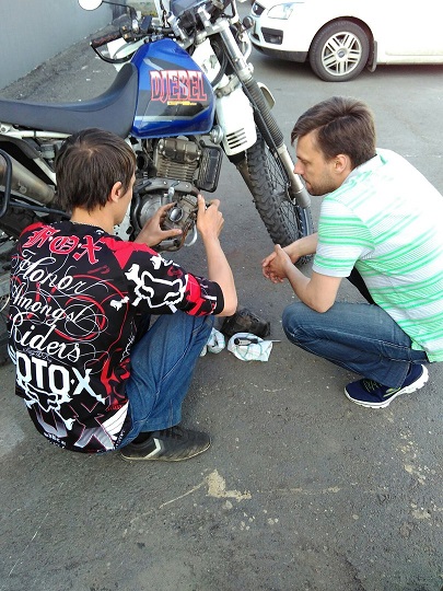 | Итак, почти прошел еще один 30-ти часовой день... (судя по количеству событий и ощущениям). Сегодня мы спали в лесу аж до десяти, это все очередной часовой пояс виноват. Доели уху, сделали гимнастику, слегка покормили комаров и смазали некоторый крепеж мотиков фиксатором резьбы, а то уже утеряна подножка пассажира, и еще несколько винтиков готовы были распрощаться с нами. Федералка с грузовиками встретила, как родных, разве что минут десять поливала нас хорошим ливнем. Однако мы теперь ученые, и после первых капель уже одевались и надевали чехлы на обочине по полной программе. Чем дальше заезжали в Башкирию, тем более живописные виды открывались взору. Правда, это еще "цветочки", как уверили нас позже. А еще повсюду качают нефть, нередко прямо во вспаханных полях. В районе пяти вечера мы въехали на широкий проспкт Уфы, обратив внимание, что на каждом повороте стоят гаишники, причем начались они километров за пятнадцать от города. Из множества растяжек и плакатов стало ясно, что встречают не нас, а метрополита Кирилла. А нас встретил Рустем, путешественник, мотоциклист и замечательный человек. Накормив пловом, тут же увез нас показывать город, взяв в помощники подругу Лену, которая, узнав про наш приезд, с удовольствием вызвалась поучаствовать в экскурсии, прихватив три бутылочки пива. Мы умудрились объехать почти десяток мест, по всей немаленькой Уфе! С трудом прервав общение, так как на часах уже перевалило за полночь, вернулись домой. Продолжение завтра... С. 4130км