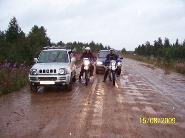 Pavel, это же Север, там с погодой не угадаешь Мы когда из Кандалакши выезжали - солнце светило, в Умбе всё затянуло до горизонта, а когда на грейдер вышли и стали моты из прицепа разгружать - дождь начался. Саня, Вовка и Серега насквозь мокрые там говномесили, но были очень довольными Андрей "Север" на КЛЕ-хе своей, правда, не сильно веселым выглядел А я очень порадовался, что оставил Дрозда у Егора на даче и с ним на машине поехал.