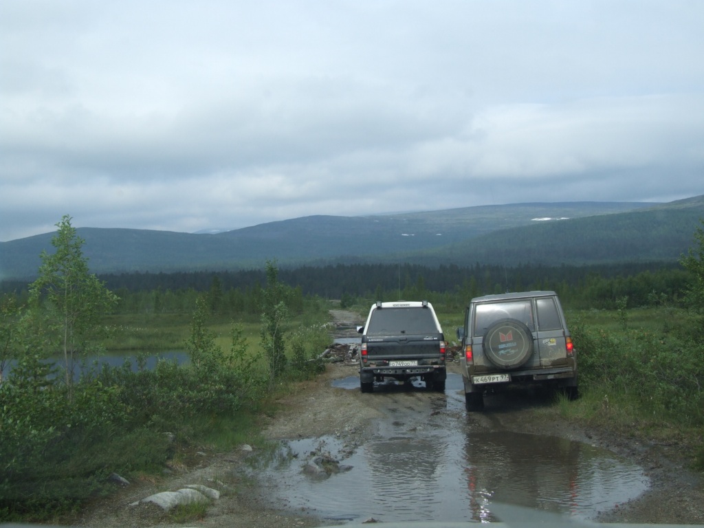 | Маршрут Умба-Ревда по полной ходил два раза в 8-м и в прошлом году. Кусок этого маршрута от Ревды до Октябрьского, а точнее до своротки на Октябрьский и есть "Тысяча ручьев". Ходил на авто. Особых красот там нет. Чисто на преодоление себя и на технику вождения. Сами 1000 ручьев это по большей части каменный триал вдоль старой узкоколейки. Можно тупо по ней весь маршрут проехать..., если аммы выдержат. Если идти с Терского берега от Умбы, то есть два варианта - один через старые гати, второй относительно простой. Дороги там преимущественно песчано-глинистый грейдер. Проходимость сильно зависит от уровня воды. Броды в общем не глубокие и крепкие. Но на гатях при любом раскладе на моте будет просто звиздец, потому как бревна под водой лежат самым причудливым образом, а глубины до метра... Это к тому, что если кто-то планирует от Умбы идти на Октябрьский - запаситесь правильным треком. Первый раз рубились как раз через гати от стоянки на Ремозере до начала 1000 ручьев, а это немногом больше 50 км, около 11 часов. Ну и пару фоток, правда на самих ручьях уже сил не было снимать, да особо и нечего...