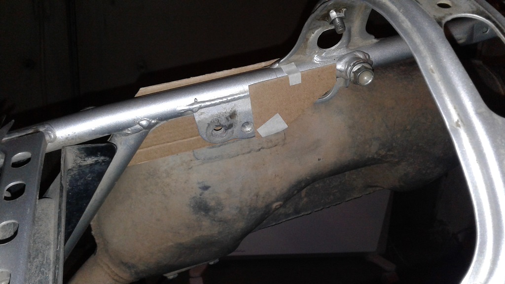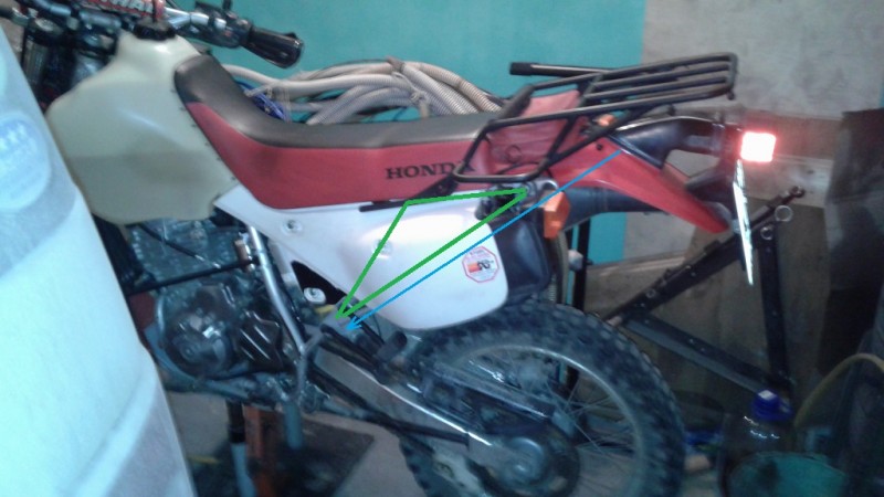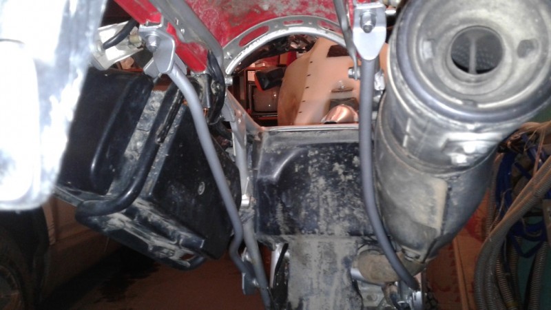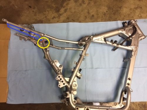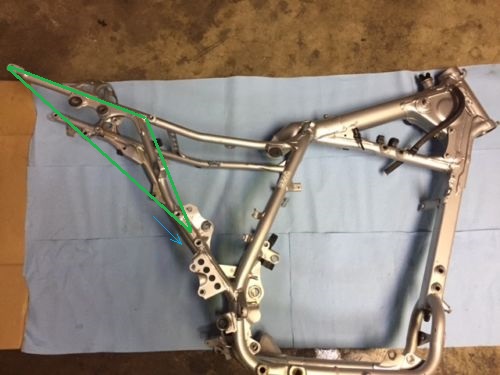 Не совсем согласен с данным утверждением. В данном случае трещина пошла после болта крепления глушителя. В стандарте, как мне кажется, глушитель выступает как силовой элемент, так как трещина прошла после его крепления к раме. Без установленного глушителя, эта часть рамы гуляет очень сильно, но после его установки, изгиб хвостовика рамы по вертикали, заметно меньше или требует намного больших усилий. По поводу вибраций, согласен. Особенно с учётом установленного багажника. На предмет усиления рамы сплошной полосой, рассматривал такой вариант. Но, я думаю, что мы перенесём место поломки в другое место. Выделено красной линией. Так как в данном случае, консоль, мы ни как не убираем, и нагрузки приходятся поперёк "укосины" рамы.