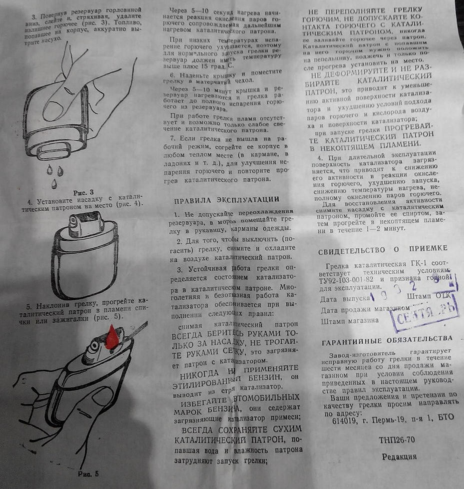 | Цитата Парамон (  ) Попробуйте найти это место ... Радости всем! После развала СССР это будет непросто, но возможно. Попробуй найти (если реально интересно, а не ради потролить) старые советские индексы и инфу по закрытым военным городам типа Пермь-19 (думаю, про номерные города рассказывать не надо?). Мне это не надо искать, я эти грелки еще в советское время видел в продаже в отделе для рыбалки, и у деда такая была, отец мой ему покупал/дарил. Не помню сколько она тогда стоила, но помню что дорого. Коробка и внешний вид не изменились с тех времен.
