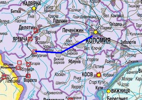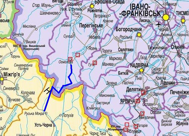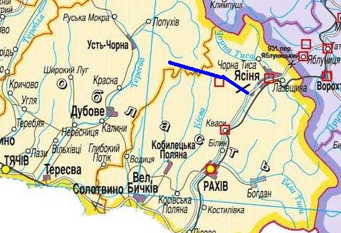 Выезжаем на дорогу 2 категории Яремче – Рахов Н09 и поворачиваем на юг, доезжаем до Рахова. В городке поворачиваем вправо и поднимаемся на перевал в сторону Косовской поляны, дальше Кобылецкая поляна, Водица, Дубовое. На 60 км 5 перевалов. Местами дорога 4 категории. От села Дубовое на Усть Чёрную, Комсомольск, Колочава (45км) через певал Прислоп. Вообще этот перевал имеет два варианта. Один вдоль линии электропередач – 5к. и вариант по серпантину,сейчас вроде там 3к. От Колочавы до Межгорье асфальтный перевал 2к.