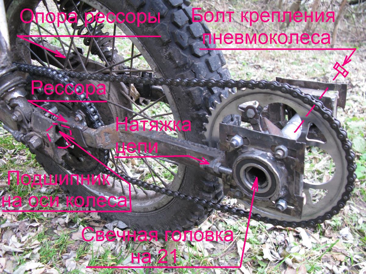 оси заднего колеса. Маятник подрессорен двумя пластинами, вырезанными с