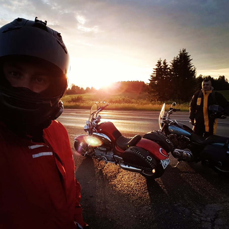 стартовали из Питера. в момент старта выяснилось, что не работает розетка на триумфе (единственная розетка в команде). погнали в Ригу без навигатора.