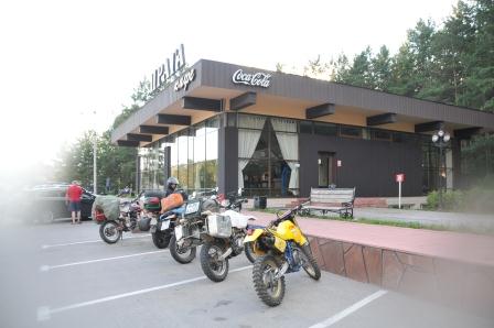 Здесь же мы познакомились с 4мя парнями, которые на мотоциклах путешествуют вокруг Байкала. Сами из Улан-Удэ. Ребята предложили вывести нас из Иркутска, дабы нам самим не блуждать, показали отличное кафе "Прага", где мы все вместе поужинали. Крутые истории от крутых чуваков + решение проблемы с колесом заставили нас улыбаться всю оставшуюся дорогу до места ночевки.