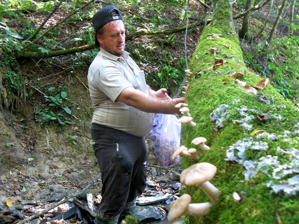 По колее попадаются лужи бездонной глубины с вязкой глиной и прозрачной водой. Володя меня переубеждает, что лучше потом поехать по его дороге, которую он знает, и по которой точно доеду. А пока собираем грибы, за которыми Володя сюда приехал.