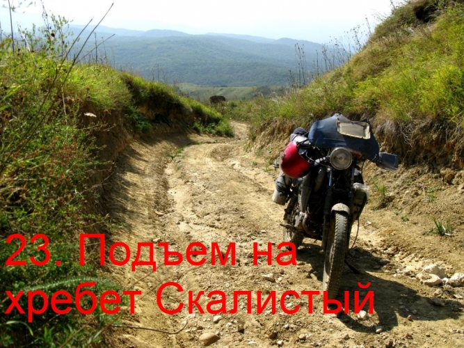 Выводы: прошлогодний отчёт на Кавказе может устареть за один хороший дождь. Каждую весну, что-то смывает, что-то разрушает вода. Дороги по хребтам, где речек нет, менее подвержены этому правилу, но не забудьте, что должен быть по таким дорогам запас воды. Общий пробег 50км. По хребту «Скалистый» 20км. Потратил целый день на дорогу Псебай - Баговская, по хребту «Скалистый» потратил 6 часов. Максимальная высота немного более 1000м. Сложность дороги через хребет «Скалистый» для спортивного мототуризма четвёртой категории. И главное, на открытой местности, где нет леса дороги в основном на много лучше, ведь лесовозы здесь лес уже не возят. Я рассматривал и вариант через село Перевалка, но той дорогой тянут лес тракторами, и дорога скорей напоминает канаву с водой – это, по словам Володи.