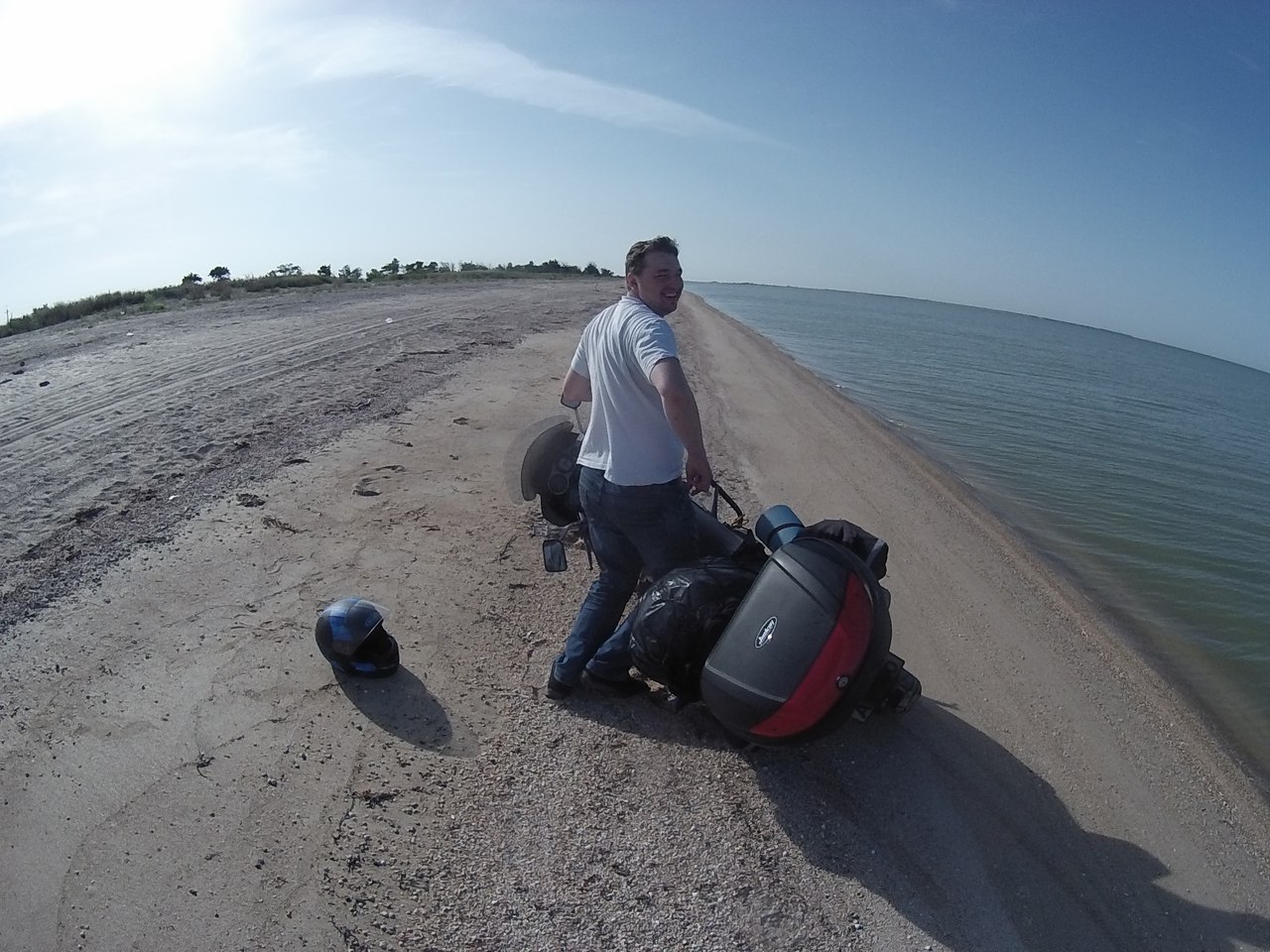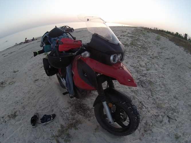 Оказывается он встал ещё раньше, около 5, так что в дорогу мы собрались уже часам к 8-ми. Легкий завтрак, сборы, пару фото на память и последний раз решили прокатится по берегу.