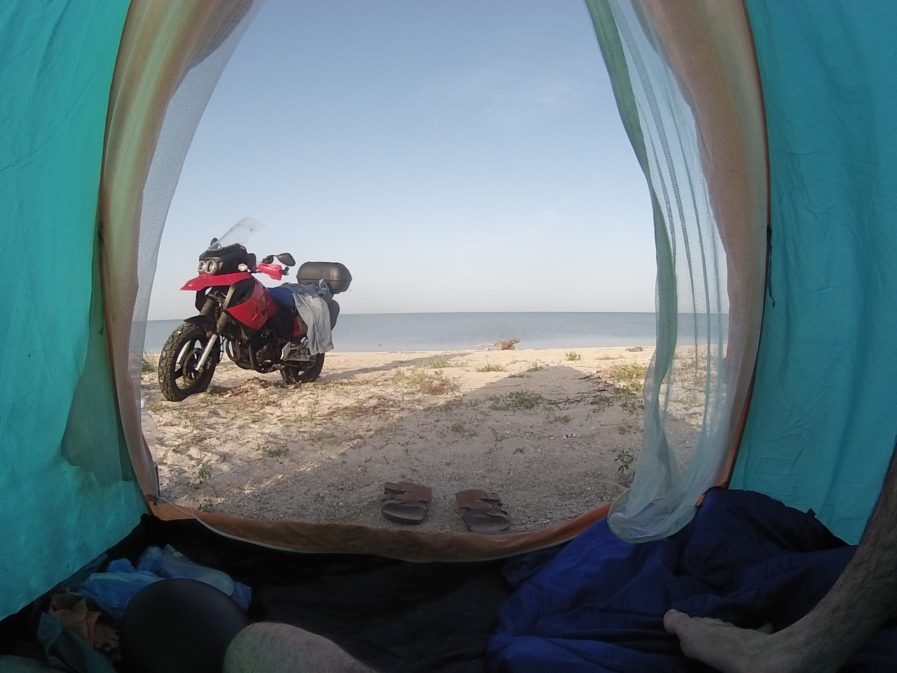 Спалось отлично несмотря на сильно обгоревшие плечи, руки и нос. Палатка стояла на теплом и мягком песке, а вокруг, не считая шелеста волн и стрекота цикад, тишина.
