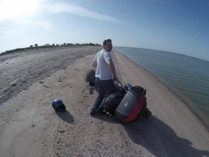 Волны накатывали на берег и разбиваясь о колеса Каркалыги обдавали меня солеными брызгами, а я был счастлив ничуть не замечая того, что ботинки и джинсы давно уже намокли.