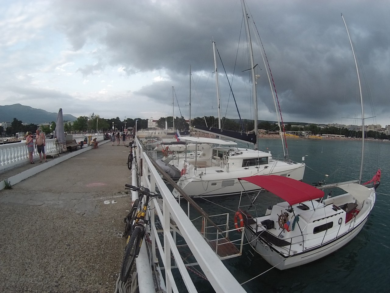 Море- теплое. Не такое теплое, как Азовское, но купаюсь минут 40. После иду гулять по набережной. Здесь во всю кипит жизнь. Чего только нет. Мало того, что сама набережная красива и гармонична, так здесь еще есть и причал яхт и судов (почти все выходят в море с туристами за деньги), есть парк атракционов (самая высокая цена 350р. В основном 100р). Прокат велосипедов (100р час) электро скейтов, электро самокатов, сигов и еще черт знает чего. По самым живописным местам проложена велодорожка, так что сняв в аренду, например, велик, можно насладится видами набережной, парками и скверами во всей красе.