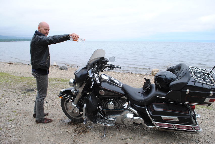 За Слюдянкой был Байкальск.Сделали пару фото,омыли байки Байкальской водой :-)
