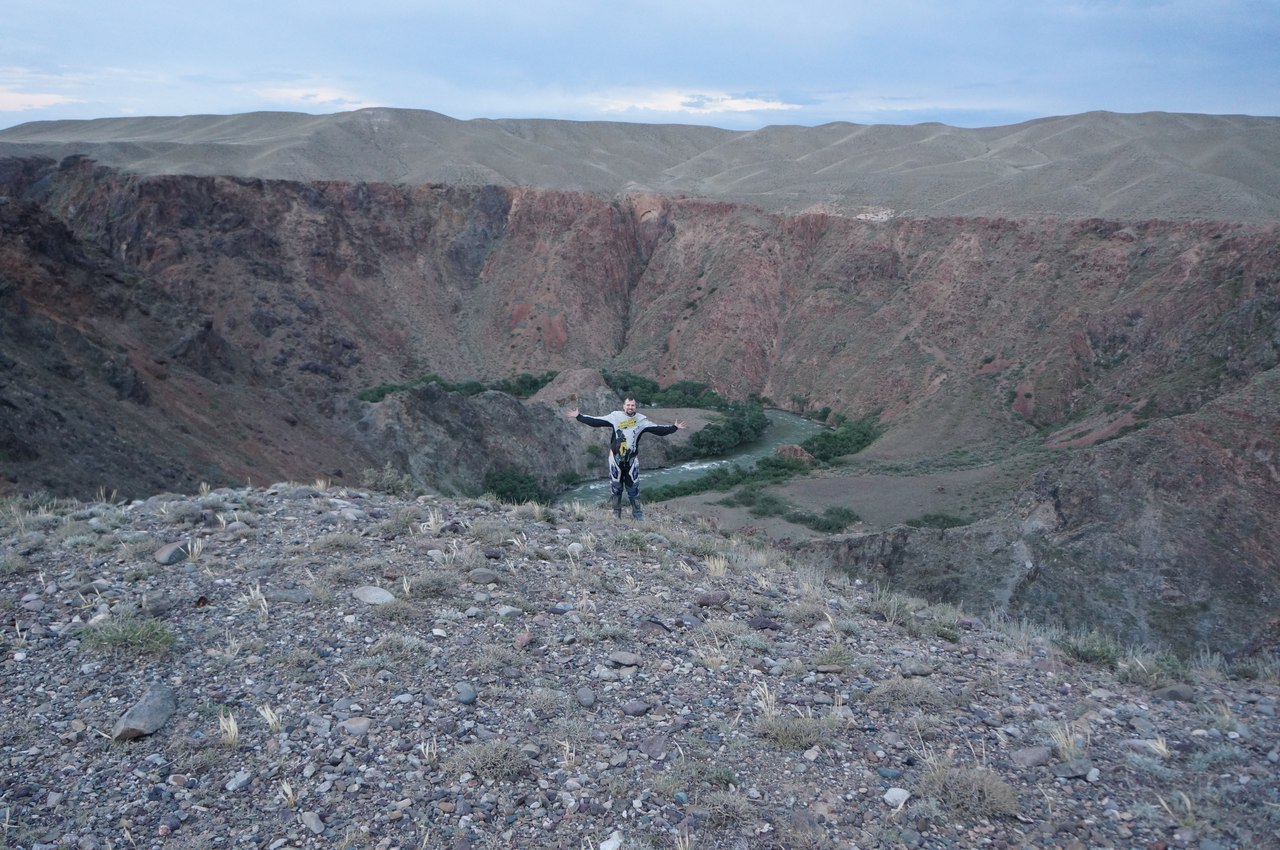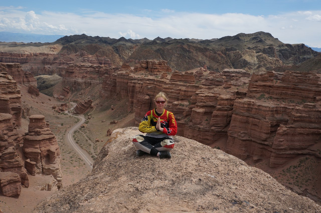 В прошлом году, намного сильней чем Памир, красотой гор меня покорила Киргизия. Поэтому, стартуя из Алма-Аты, просто невозможно было не прокатиться по окрестностям Исыккуля еще раз. В день выезда мы как- то долго собирались. Потом, очень тяжело по жаре, через пробки, выезжали из города. До темноты прошли Меньше трех сотен километров, доехав как раз до реки Чарын, той, которая формирует «советский Гранд Каньон». Поставили палатку на краю обрыва и наслаждались видами. Пользоваться «телепортами»- это великолепно. Когда для того, чтоб попасть в красивые и интересные места не нужно неделями пилить по запредельно скучным дорогам. Зимовка в Алма-Ате совсем не была ошибкой…